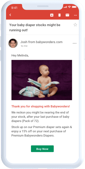 Incorporate behavioral learnings of your users into your sales processes to proactively identify upselling opportunities. Send out consistent and personalized product recommendations to boost sales revenue by 10-30%.