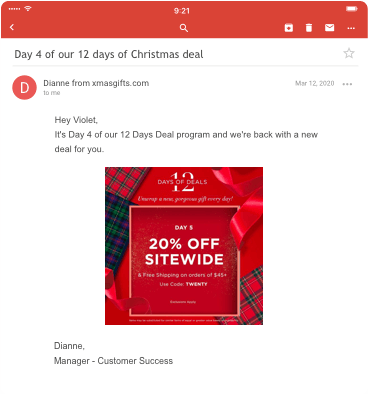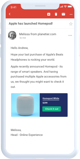 Take cues from the past purchase behavior and engagement levels to your communications, to recommend products your users are most likely to buy. Get up to 25% higher purchase frequency on your marketing campaigns.