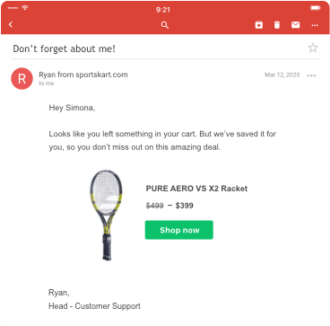 Give a leg up to your revenues by getting your cart abandoners to complete their purchases. Use auto-reminders & run targeted promotions to make shoppers pick up right where they left off and see up to 23% uptick in revenue.